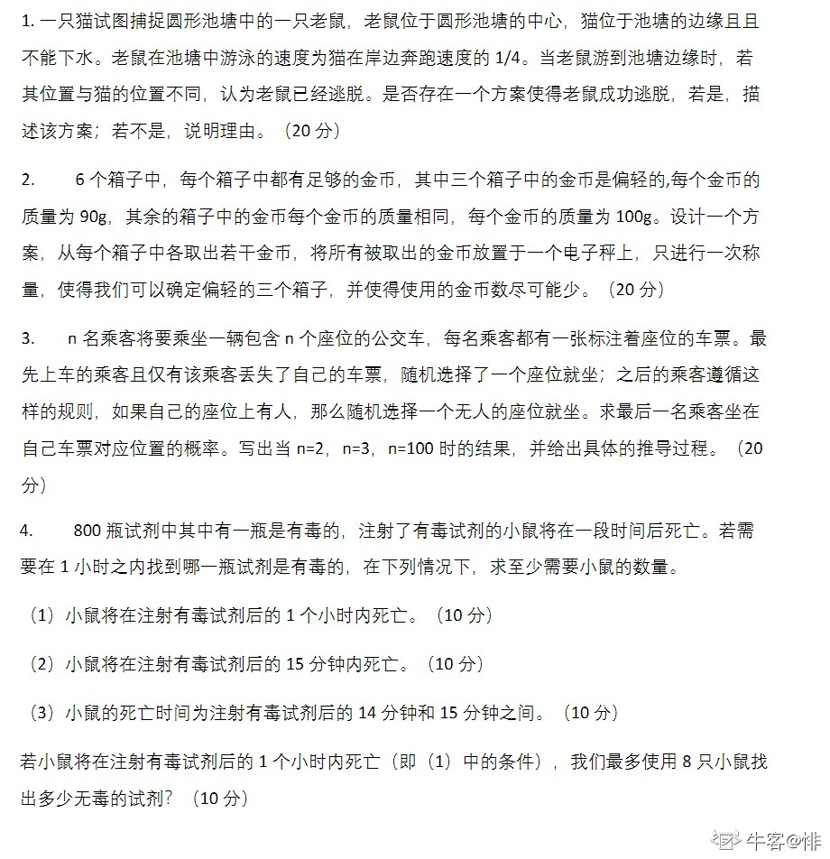 又来一次准备的全不考,考的全超纲。印象里第一道考的扑克牌,第二道考的多项式函数问题,第三道看不懂,GPT说是奥赛罗棋盘变种问题,我的定义是一头雾水问题。第四道最优择偶问题说是。