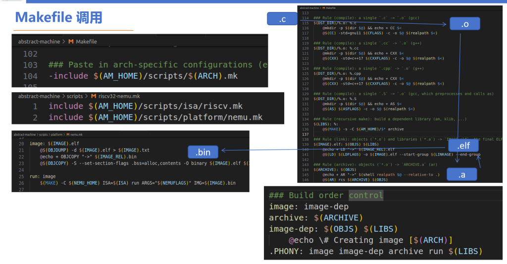 YSYX-Makefile 2026-1-27 15:47 | 24 | 0 | Tech,YSYX 94 字 | 1 分钟内 一生一芯Makefile 时序调用 Go f**k Ur self 具体调用思路和顺序如上图总结,本质上还是在编译C文件为机器码然后用模拟器模拟运行。 大致顺序是am_home下的几个文件夹之间的循环调用,然后到nemu去make run 执行目标。